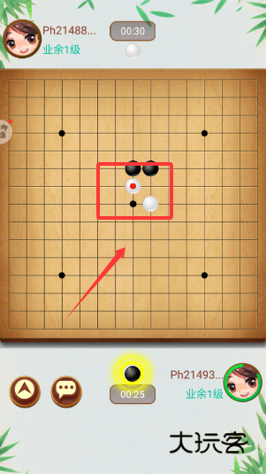玩法:游戏通过点击屏幕横竖线交界点进行操作,点击放置棋子,五个连成一线的一方获得胜利。