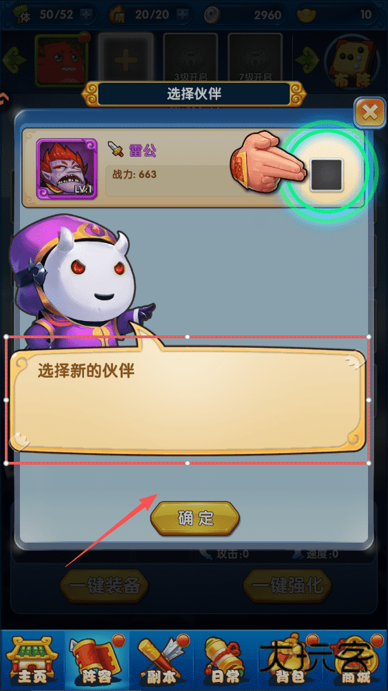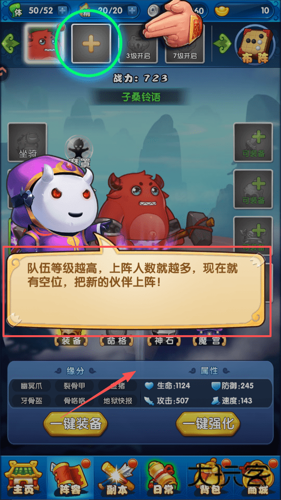 2、队伍升级后,记得点击“阵容”添加新伙伴上阵,多一位伙伴就能显著增加你的整体战力。