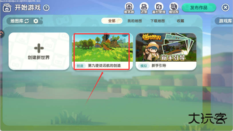4、你会看到自己保存的所有地图,找到你想玩的那一张,比如叫“第九使徒远航的创造”的地图,点击它,游戏就正式开始了。