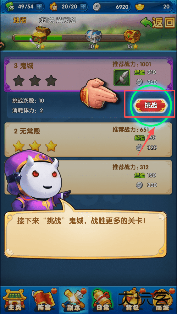 5、副本挑战:副本挑战也是作妖计中银币的主要获取途径之一,稳定,高产,推图即得