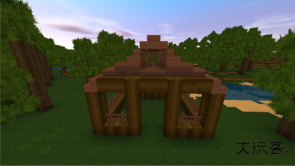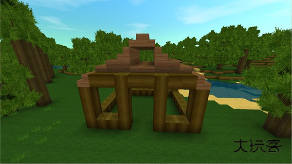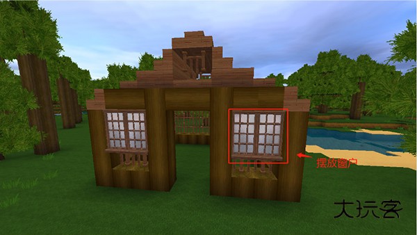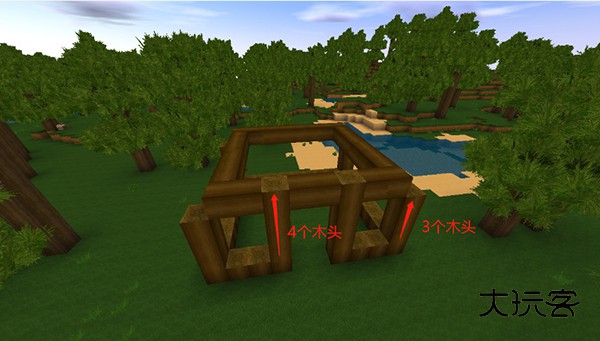 收集到大量木头后,直接用木头搭建一个房子的框架。