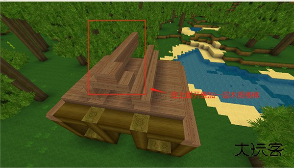 继续往上错开叠加一层木质楼梯,注意摆放的方向。