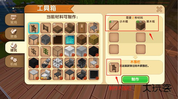 接着打开工具箱,制作木围栏。