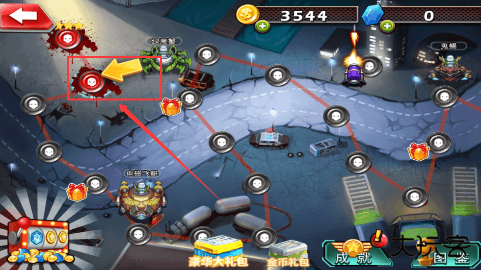 1、界面中的“保障箱”、“鬼蝎”等可能是特殊物品或角色,初期可以先熟悉位置,之后再用。从主菜单点击“开始”,就可以正式进入关卡挑战了。
