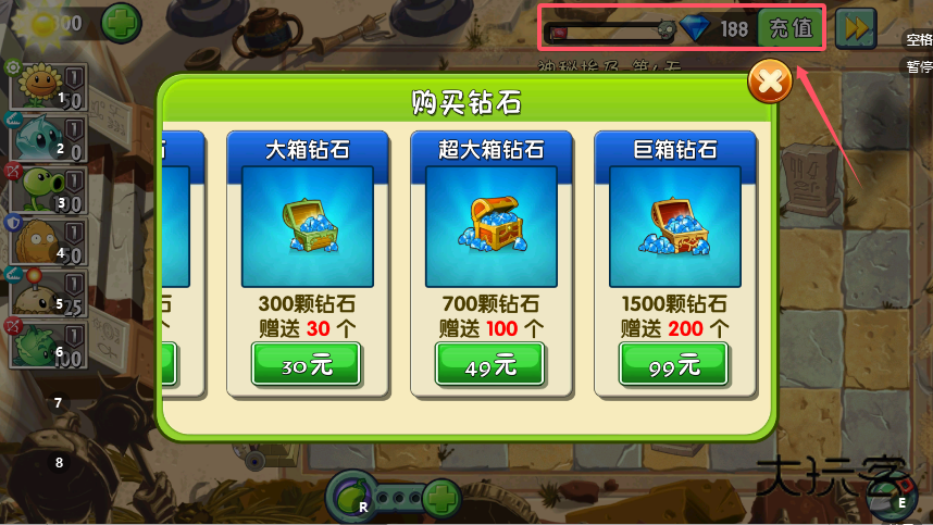1、启动游戏后,在主界面右上角可看到当前钻石储备数量,该区域明确标注了“188”这个数值,意味着此刻虚拟财富的具体额度,旁边“充值”字样的入口是拓展资源的唯一途径。