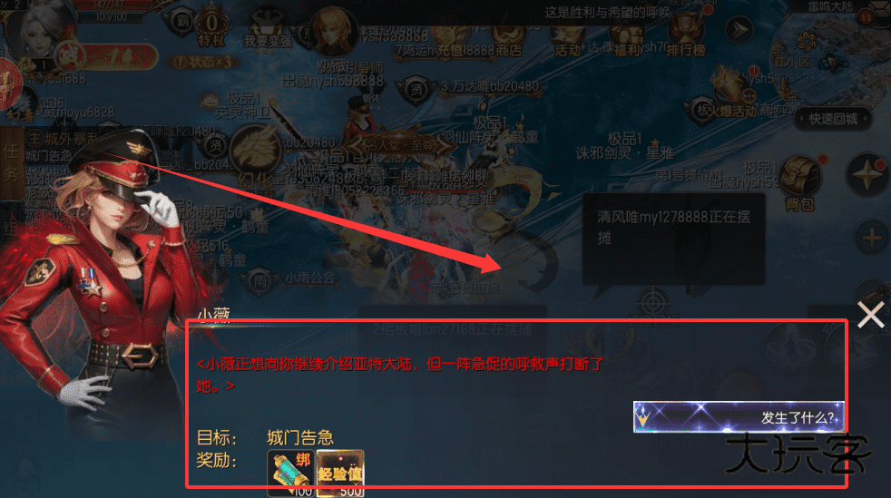 3、任务进行中可能会被突发事件打断,例如城门告急,注意查看目标与奖励提示。