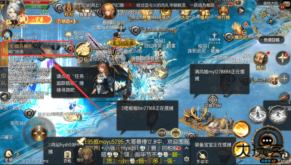 4、游戏界面含有角色状态,聊天、地图等功能,熟悉布局有助于更快操作和应对突发情况。