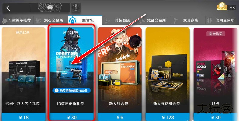1.首先你需要在商店组合包中获得id信息更新礼包,就是我们通常游戏当中的改名卡。