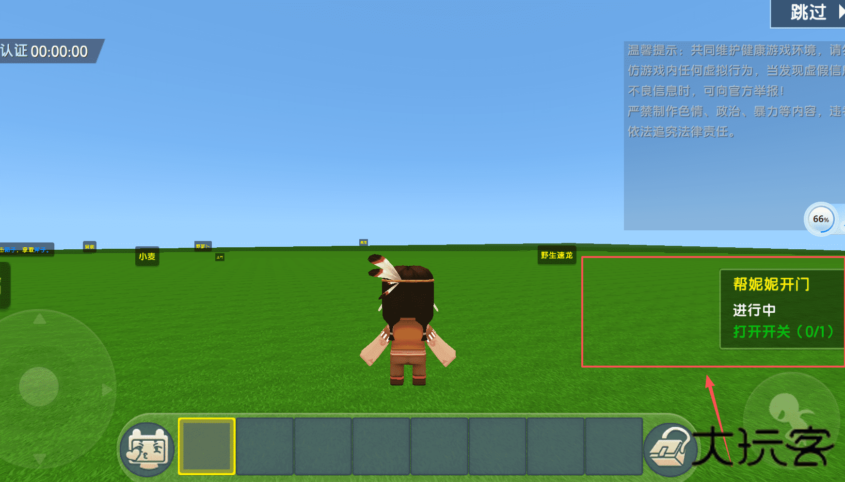 4、进入游戏后呢,留意任务提示,比如“帮妮妮开门”和“打开开关”。