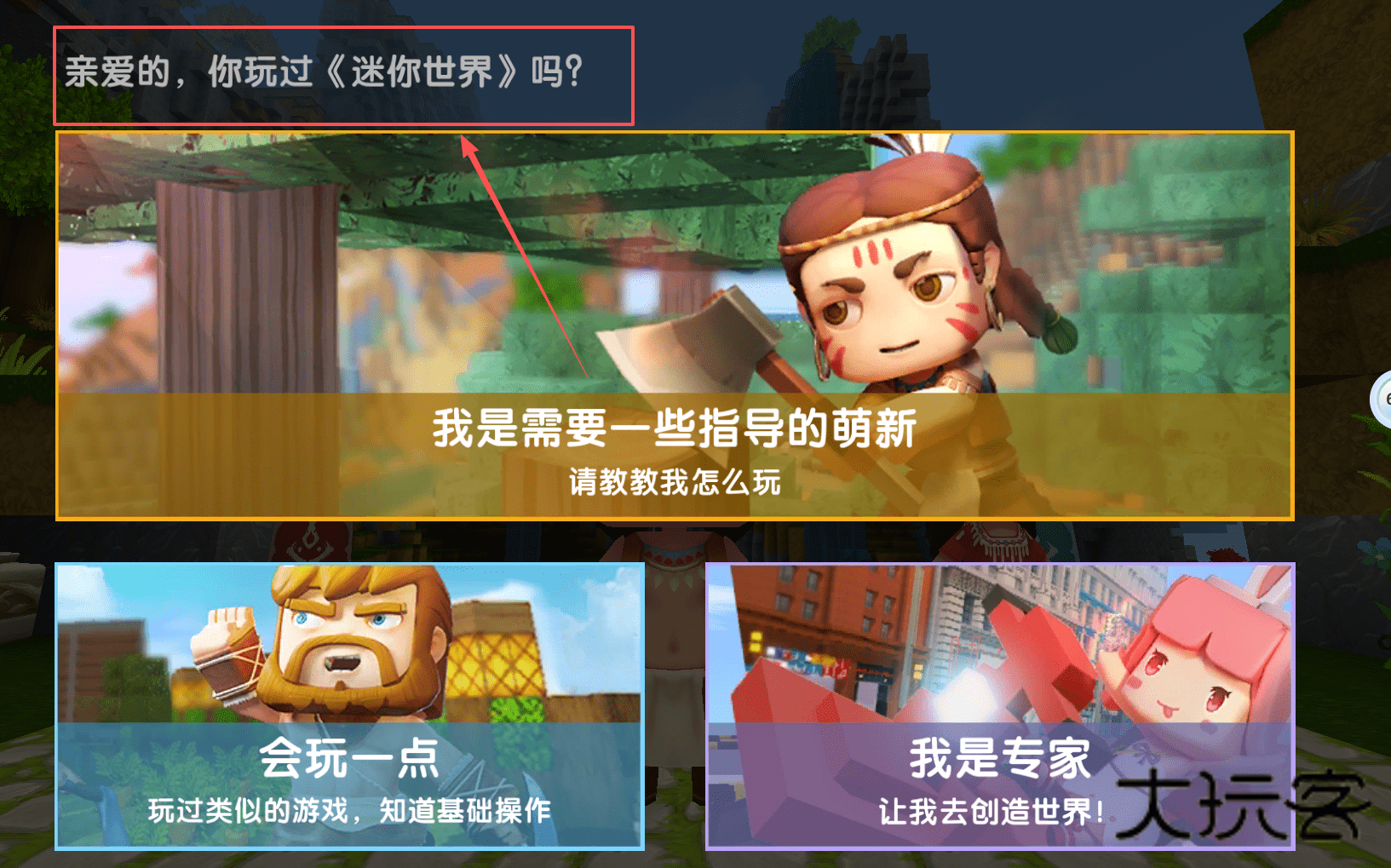 2、新手引导阶段呢,系统会询问你的游戏经验。你可以根据实际情况选择。