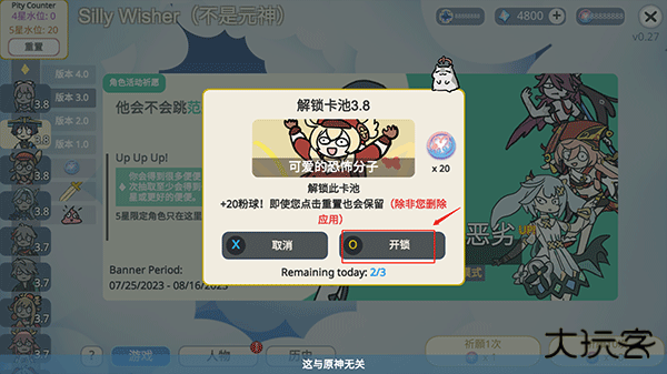 2、切换卡池需要先解锁,点击开锁即可