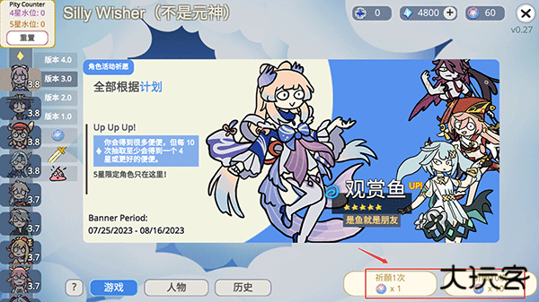 3、切换卡池后点击右下角祈愿1次或祈愿10次