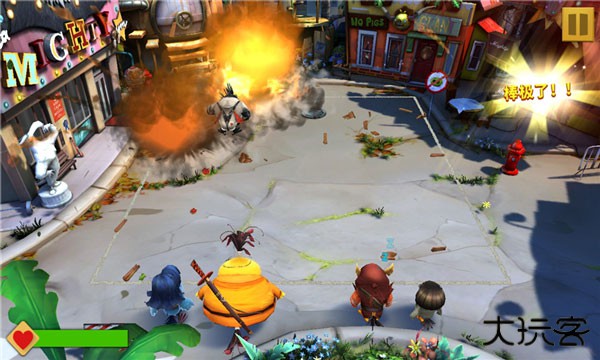 3、将其对准厂商的所有猪头,利用反弹的力量将其全部打倒;