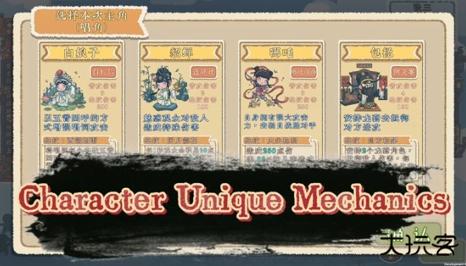 4、游戏整体美术风格采用水墨画风,营造出浓厚的东方戏曲氛围,场景设计融合传统戏台元素,打造沉浸式视觉体验。