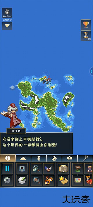 上帝模拟器2是一款开放世界沙盒创造游戏,游戏中,玩家将扮演上帝,使用各种道具,建造出属于自己的像素世界。游戏给玩家提供了丰富的组件,玩家可以自由捏造地形,放置人类、精灵等种族,不同的种族的发展路线也不一样,但是玩家可以通过制造灾难等方式,毁灭这个文明世界。同时玩家还可以让不同的种族进行战斗。快来上帝模拟器2建造属于你的沙盒世界吧!