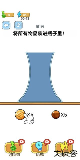1、清新简约的游戏画面设计,一场属于你的趣味闯关,需要完成各种不同的瓶子挑战,玩法还是十分的休闲的。