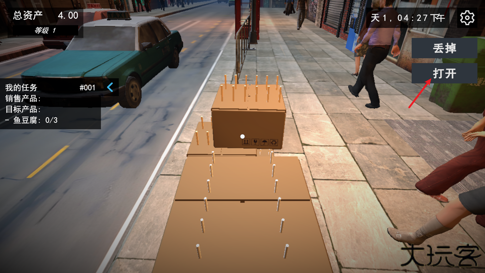 4、进货之后,等待一段时间货物就会到门口,点击拿起然后将其打开。