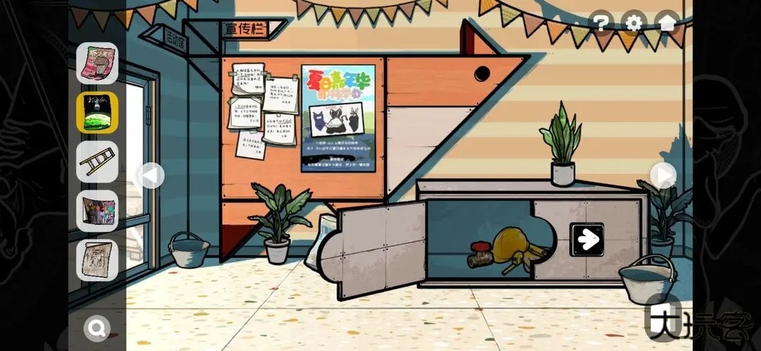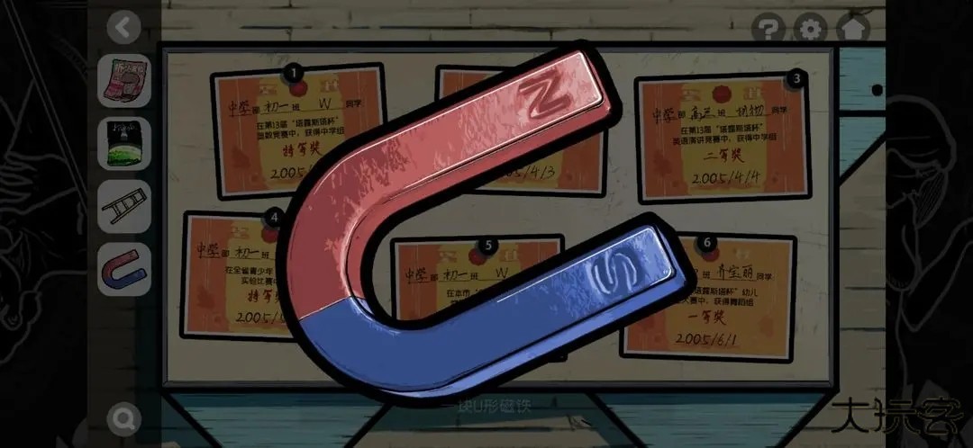 1.来到广场左侧的院门出口。获得梯子,再然后点奖状那里排序,获得磁铁(6是最新日期)。