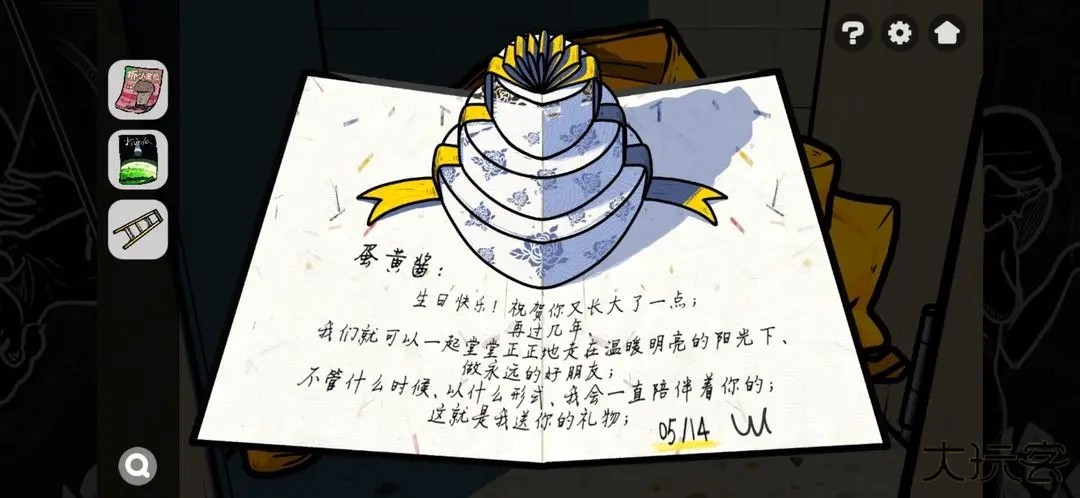 6.回到卫生间,用磁铁打开最右边的厕所,打开书包获得贺卡上的线索2(生日是14/05)。