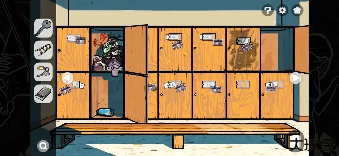 3.进入活动馆的柜子这里,把能打开的先打开,获得火柴。用之前树下获得的钥匙打开黄丹丹的柜子获得铲子。