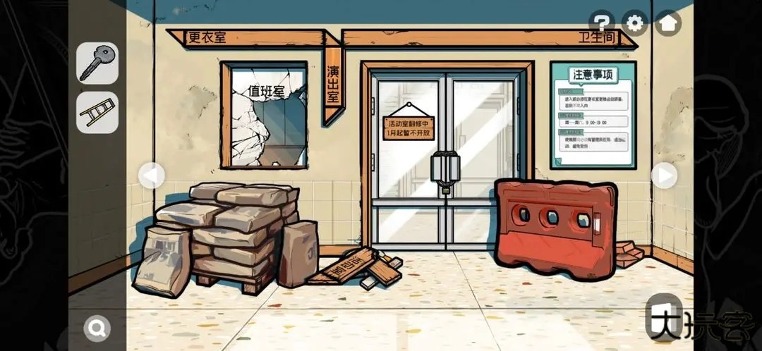 9.根据第五步获得的活动室钥匙打开活动室,在舞台场景可获得两张海报。