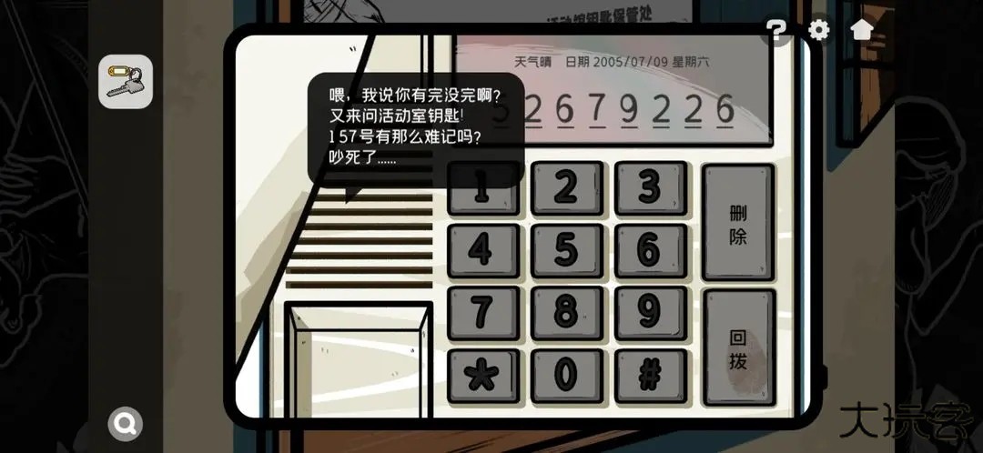 5.来到活动值班室,用石块砸开值班室,打电话,获得活动室号码:157号,获得活动室钥匙。