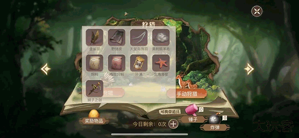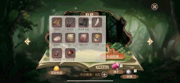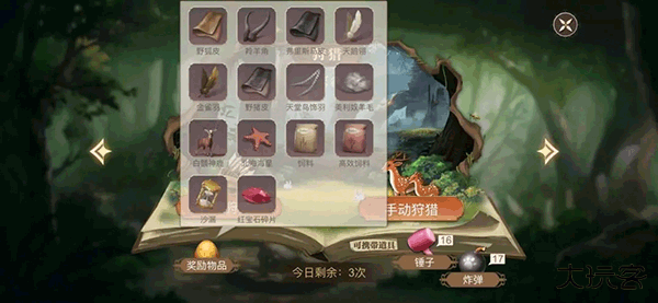因为采集和打猎的次数每天有限,最多3+3,而且采集和打猎分别有四个地图,每个地图中给的材料也不一样。采集是玩泡泡龙游戏,打猎是消消乐,两个游戏都是在2分钟之内拿到最多30个奖励。泡泡龙的奖励球是带树叶的,打猎的是图标上带个很小的蛋,都是消除了就拿到了奖励,而30个奖励中的奖励都是随机的。