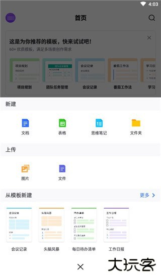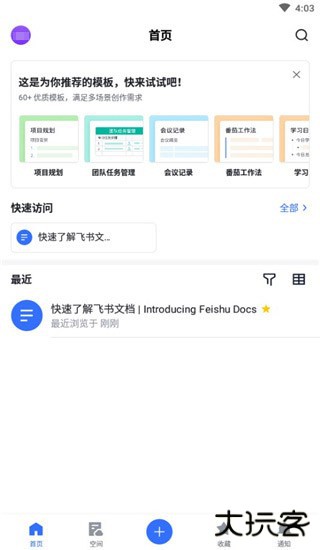 4、飞书文档提供多种实用模板,点击想要的样式,即可马上记录编辑;