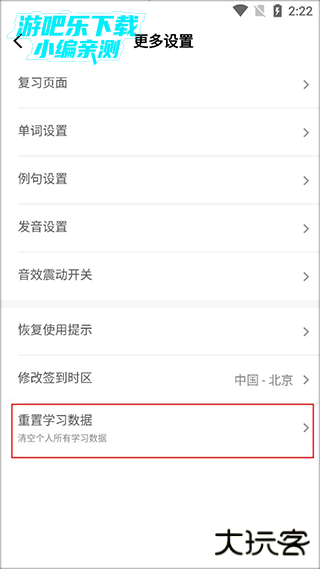 在界面的最下面找到【重置学习数据】,然后我们点击它。
