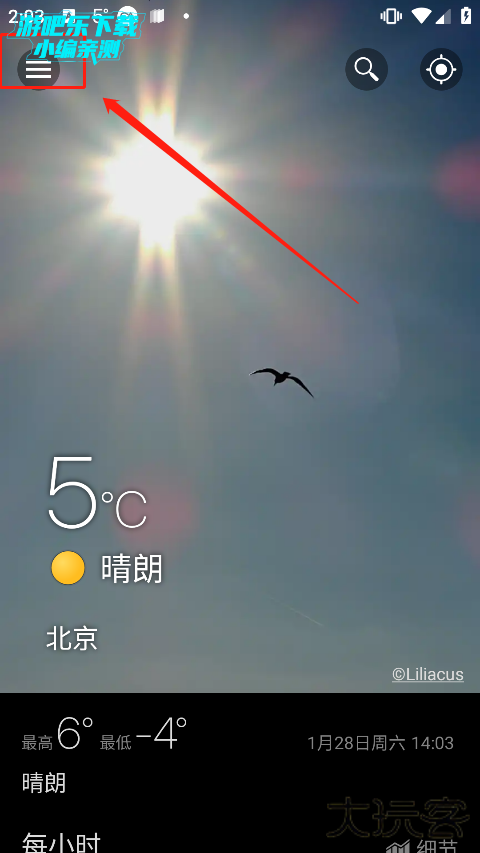 打开 WeaWoW 天气 APP,点击左上角三横线菜单图标(汉堡按钮)展开侧边栏