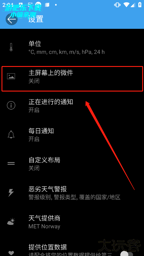 3、进入设置界面后,点击主屏幕上的微件选项