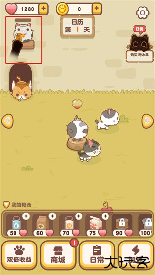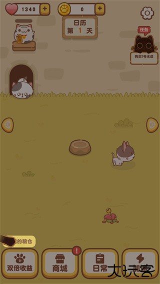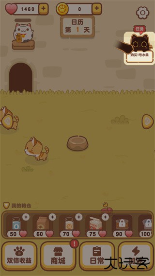 1、双击打开我的萌猫游戏,开始游戏前玩家需要点击商场来购买碗喂食猫咪;