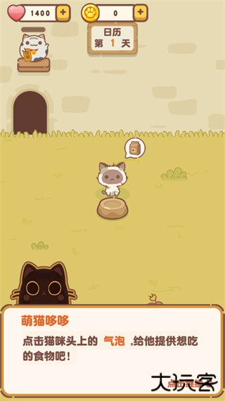 3、购买完成就会有猫咪来要吃的,玩家只需要点击猫咪头上的气泡即可进行投食;