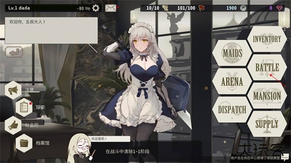 1、下载进入女仆大师手游,点击"BATTLE"开始战斗;
