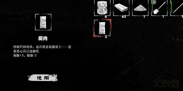 4、腐肉:探索翻垃圾获得,放到捕兽夹获得生肉。