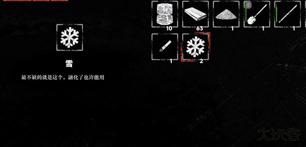 2、水:通过灶台,用雪和燃料合成,用来煮肉。