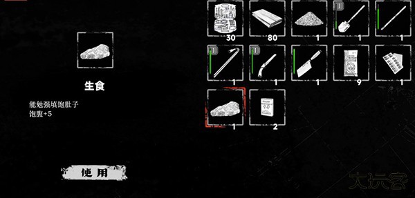 1、烟头:探索翻垃圾或者击败敌人获得,使用后可以获得精神点,但会减少健康值。
