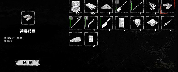 1、各种特殊药品:探索翻垃圾获得,医院地图比较多,布洛芬治疗发烧,胃药治疗胃炎,云南白药治扭伤,安定治失眠,抗生素治各种感染。