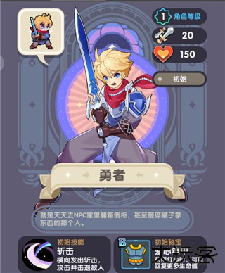 英雄评价:最好用的新手英雄,因勇者初始技能斩击附带击退效果,在一定程度上减少了走位要求,给与玩家更多的操作可能,面对BOSS战的时候也可以有效防止BOSS突脸造成的大量伤害。