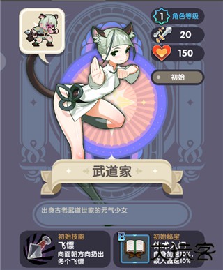英雄评价:需要一定操作的风筝型英雄,飞镖飞行轨道可控,武道家前期可以通过自身走位和速度差与怪物进行拉扯,但在后期怪物成堆出现之前仍需要配合高范围AOE或带击退效果的技能。