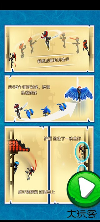 连续获得三个飞镖,则变身飞镖左右跳跃向上升。(PS:获得道具,玩家在跳跃过程中会作出拔刀攻击的动作。简单说就是在飞镖向你飞行的路上,如果你此时处于跳跃状态正面和飞镖碰上,系统则判定你击打了这个飞镖,获得飞镖道具一个;若飞镖击中你时你没有跳跃动作,则系统判定你遭受攻击,则游戏结束。其他道具获取方式一致,不加详述。)