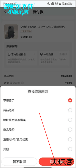 4、随便选择一个理由,点击取消即可。