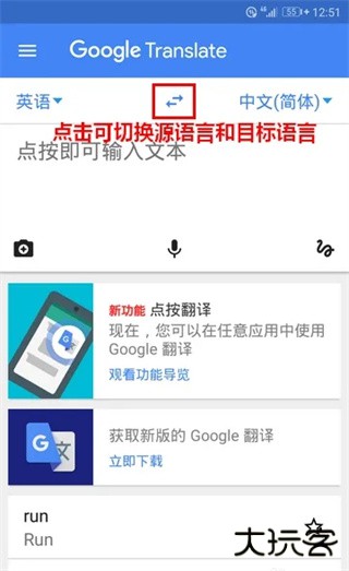 6、当然,如果你想根据中文来查对应的英文单词,谷歌翻译也是可以做到的,只需要点击中间的互换图标,将源语言与目标语言栗羞对调即可。