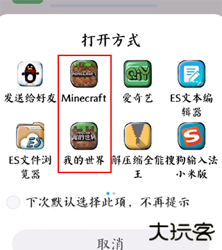 5、找到目标模组后点击打开会自动跳转至打开方式选择,我们寻找到“我的世界”并点击确定即可