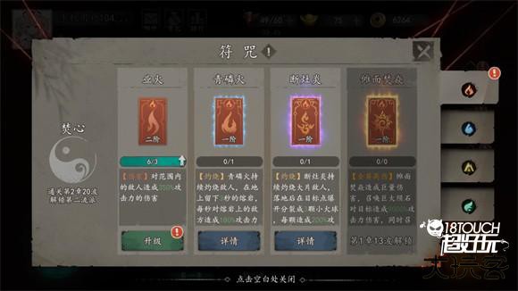 8、点击符咒可以对使用的符咒进行升级。