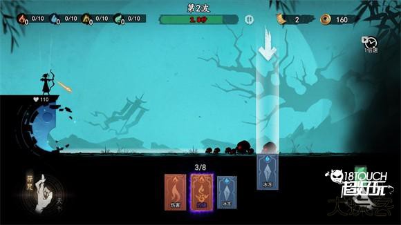 在关卡内会随机获得不同类型、不同品质的法术。通过合理的释放和手牌管理获得战斗胜利。