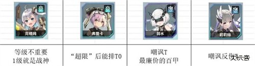 3、T1角色属于开荒过后依旧可以用的,推荐克里姆、弗兰卡、弱水、莉莉丝。