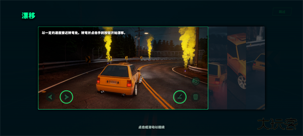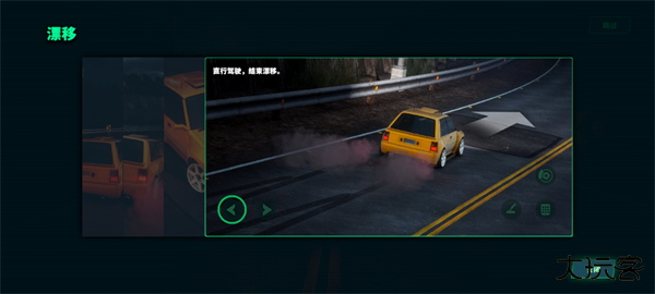 1、以一定的速度接近转弯处,转弯并点击手刹按钮开始漂移