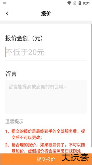 当填写完报价时,点击提交报价,最后等待业主同意即可执行订单。
