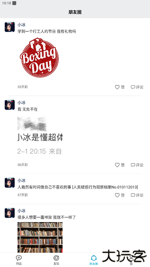 1、进入软件在“对话”页面,能够与小冰或其他克隆智能聊天;